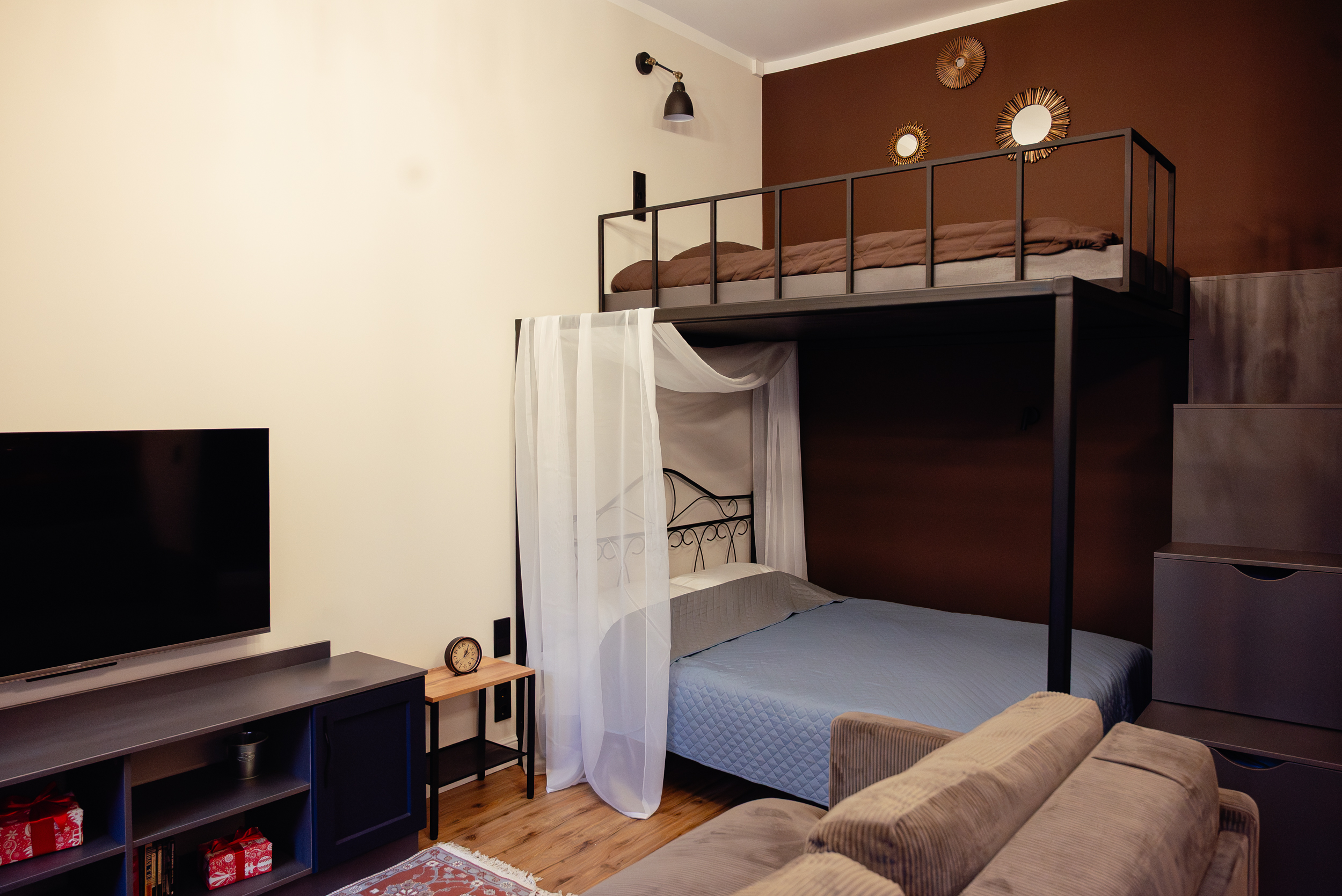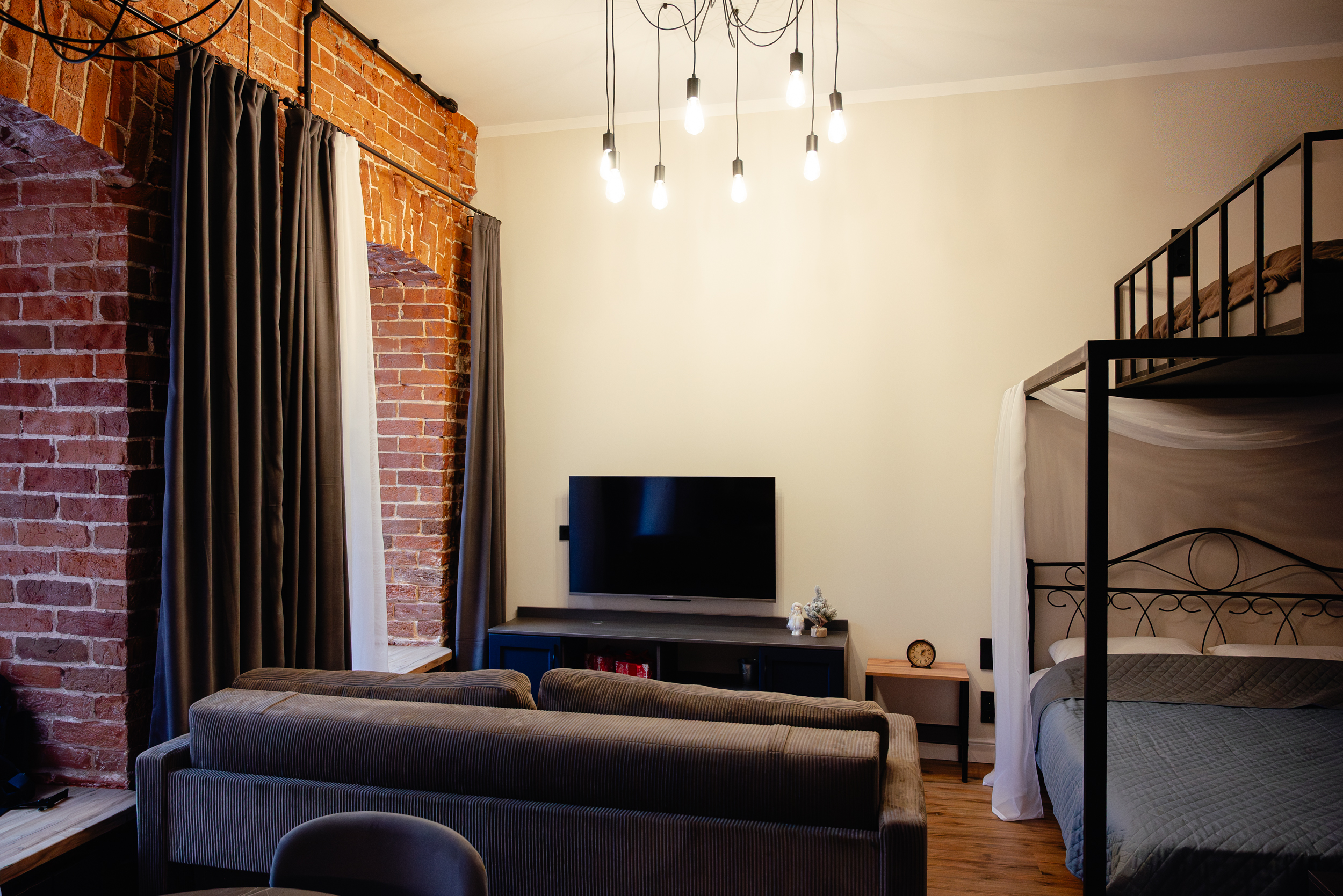 Атмосферная квартира-студия в историческом центре с высокими потолками 3,5 метра, интерьером в стиле лофт и видом на Кремль