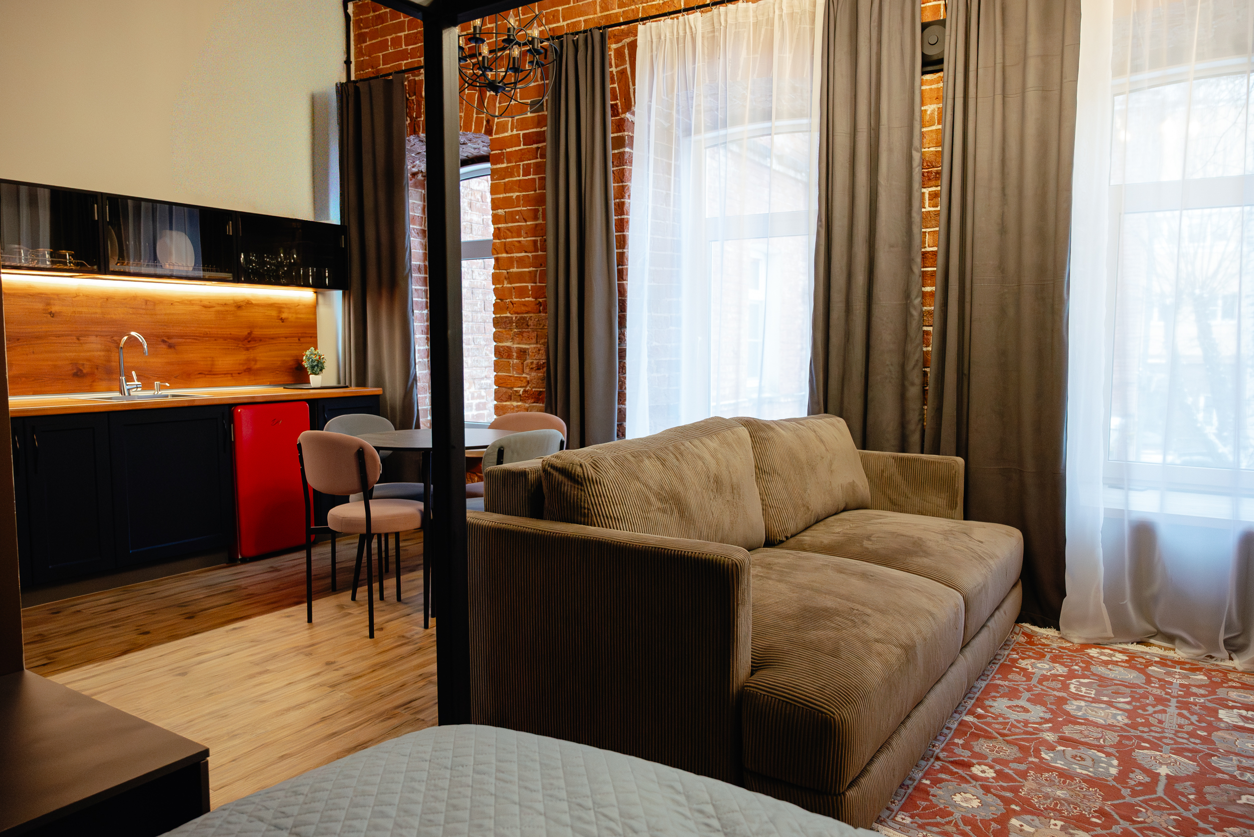 Сегодня, остановившись в нашей студии, вы становитесь частью этой богатой истории — живёте в стенах, которые помнят купцов, ярмарки и расцвет волжской торговли.